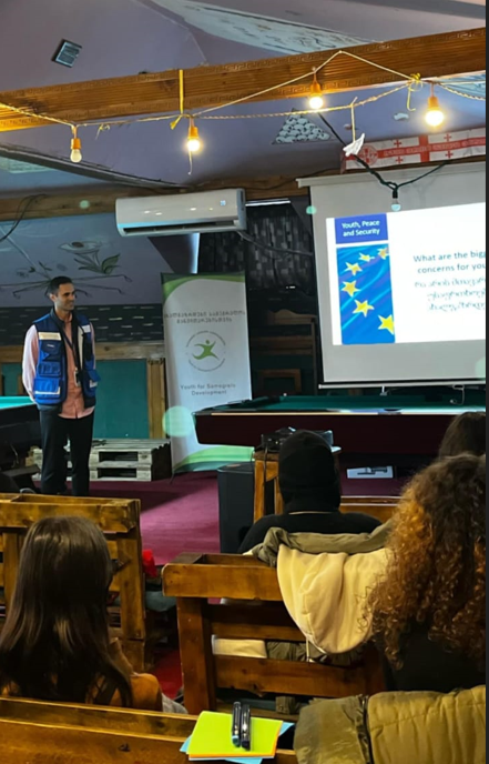 Zugdidissa työskentelevät suomalaiset EUMM-tarkkailijat osallistuivat helmikuussa 2025 nuorille suunnattuun työpajaan. Työpajan aiheena oli nuoret, rauha ja turvallisuus.