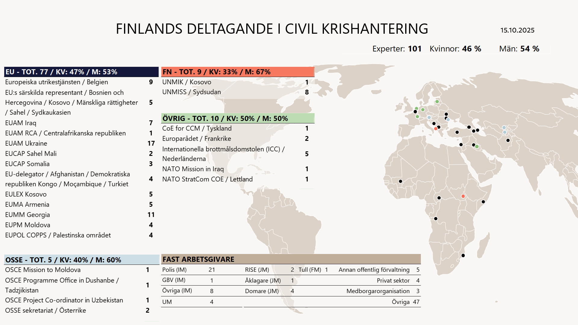 Vi ansvarar för rekryteringen av och logistiken för utsända experter inom både civil krishantering och valobservationsuppgifter.
